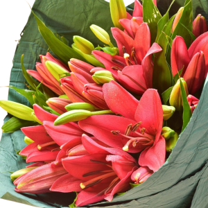 This beautiful flower bunch features lovely red lilies, a striking expression of nature’s elegance. Their vibrant petals create an enchanting display of grace and charm. A heartfelt gift that exudes simplicity and timeless beauty, perfect for adding warmth and sophistication to any celebration.​​​​​​​